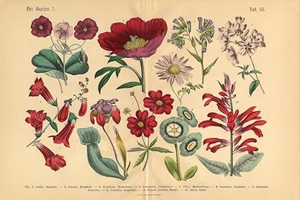 Red Exotic Flowers Victorian Botanical Illustration Art